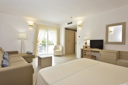 Descrizione e servizi: Il complesso immerso nel verde (196 unità abitative tra camere hotel e bungalow) è formato da un corpo centrale recentemente rinnovato, disposto su 2 livelli serviti da ascensore, dove sono ubicate le camere hotel, la hall, il ristorante, ed il bar centrale. Due schiere di bungalow in muratura, dislocati verso il mare nel verde antistante, completano la struttura. Le camere: sono tutte dotate di aria condizionata, TV, telefono, frigo, servizi con doccia, cassetta di sicurezza e asciugacapelli; la maggior parte con balcone. I Bungalow: sono tutti dotate di aria condizionata, TV, telefono, frigo, servizi con doccia, cassetta di sicurezza e asciugacapelli e dispongono di veranda attrezzata. |